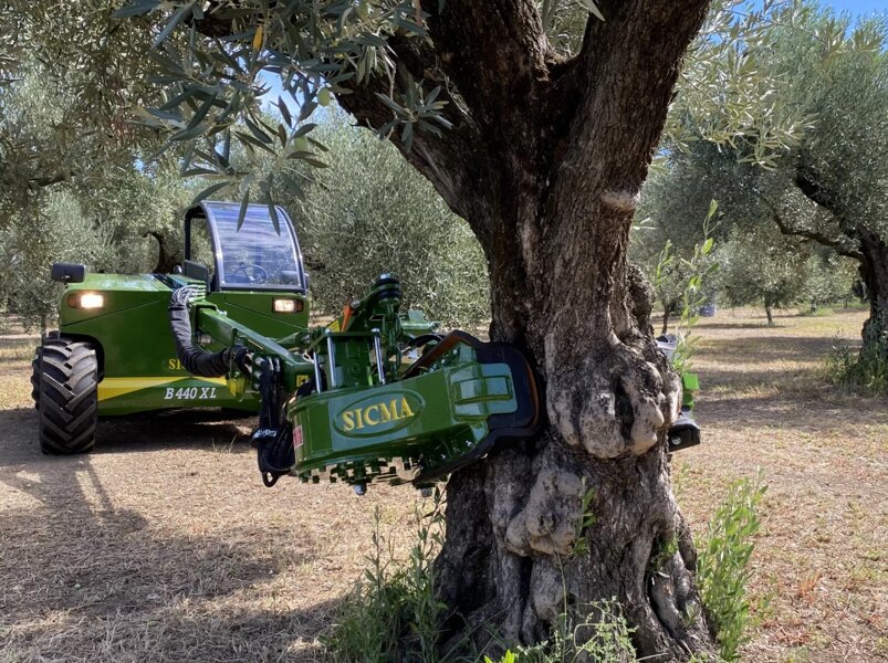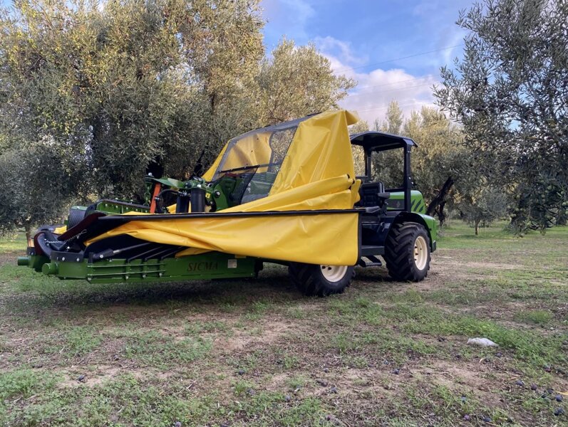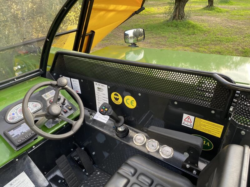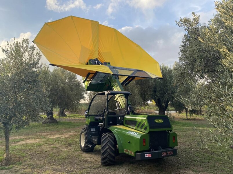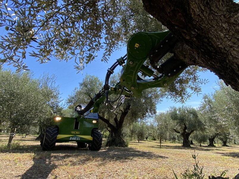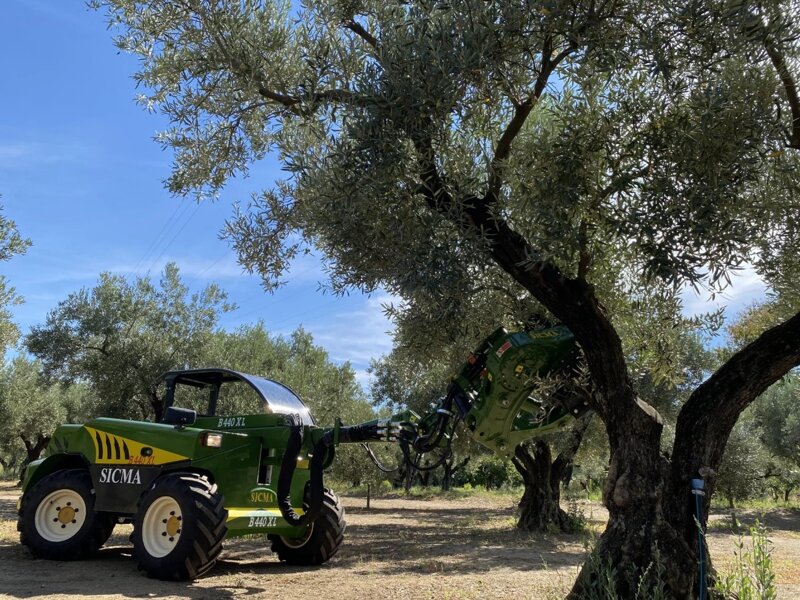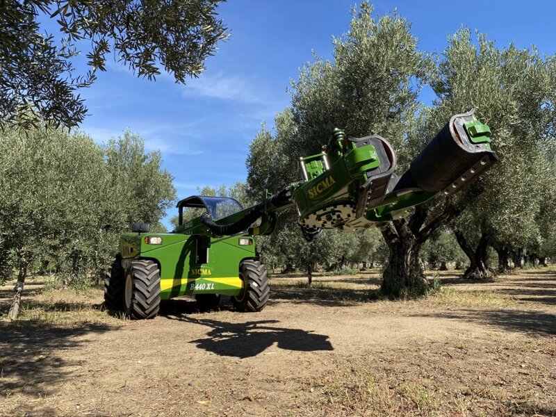 B440 XL è pensata per abbinare alle caratteristiche di compattezza ed agilità, versatilità e velocità, ideale (ma non solo) per la raccolta meccanica degli alberi di olive, mandorle, pistacchi o di frutti pendenti in genere, di dimensioni medie del tronco. La trazione integrale sulle 4 ruote, i pneumatici da 17’ ed il passo aumentato, le conferiscono maggiore stabilità, mentre i motori idraulici maggiorati delle ruote garantiscono un incremento della velocità su strada. Provvista di braccio telescopico, può lavorare con o senza ombrello rovescio, grazie al sistema a sgancio rapido. Il cassone dell’ombrello può contenere circa 250 kg di prodotto che si scarica tramite la botola sul fondo del cassone azionata idraulicamente. Finita la raccolta, la macchina può fungere da unità motrice da accoppiare ad una serie di accessori (es. forche).