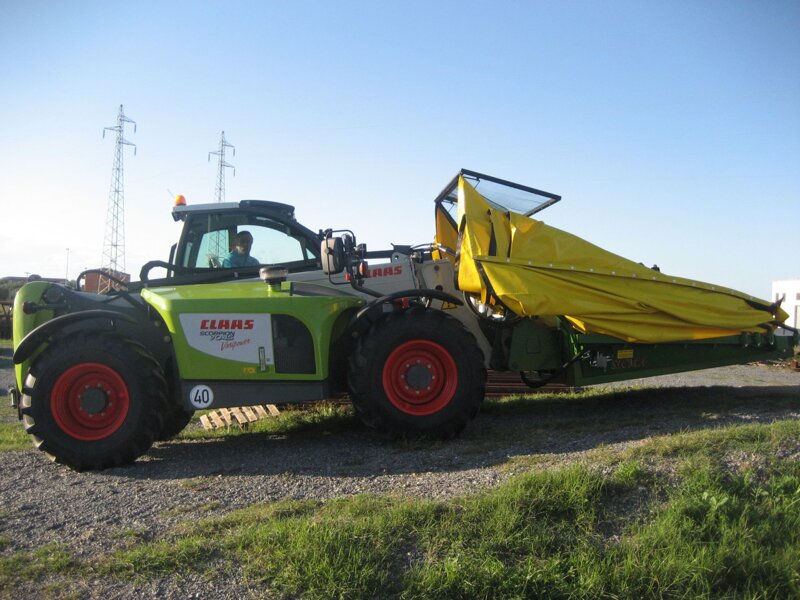 Accoppiamo la Testata Vibrante New Generation e l’ombrello rovescio (opzionale) sul braccio telescopico della maggior parte dei movimentatori telescopici (es. Bobcat, Manitou, Kubota, JCB, Faresin, Class, New Holland, Merlo ecc.) purché abbiamo caratteristiche strutturali e oleodinamiche idonee. Il kit sfrutta l’impianto idraulico del movimentatore con controlli supplementari in cabina.
