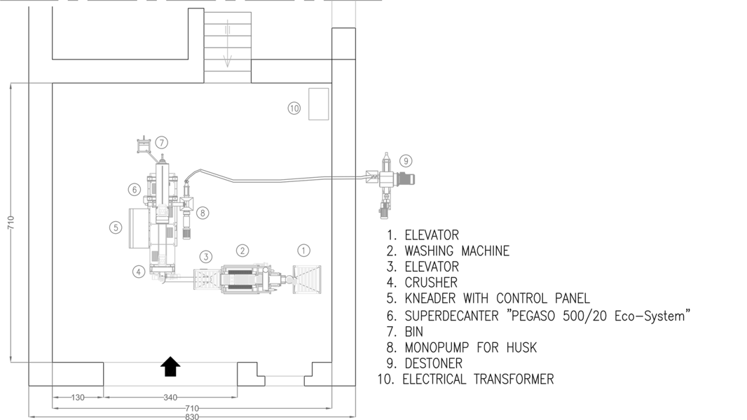Pegaso 500 è costituito da tutte le macchine che ad oggi compongono un impianto oleario standard, ma senza separatore finale.
