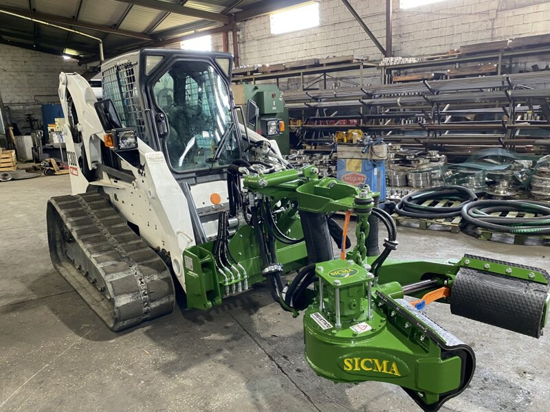 Accoppiamo la Testata Vibrante New generation e l’ombrello rovescio (opzionale) sul doppio braccio anteriore della maggior parte delle minipale sul mercato (es. Bobcat, Caterpillar, Takeuchi, JCB, New Holland, Komatsu ecc.) gommate o cingolate con caratteristiche strutturali e oleodinamiche idonee. Il kit sfrutta l’impianto oleodinamico della minipala al quale aggiungiamo i controlli supplementari in cabina.
