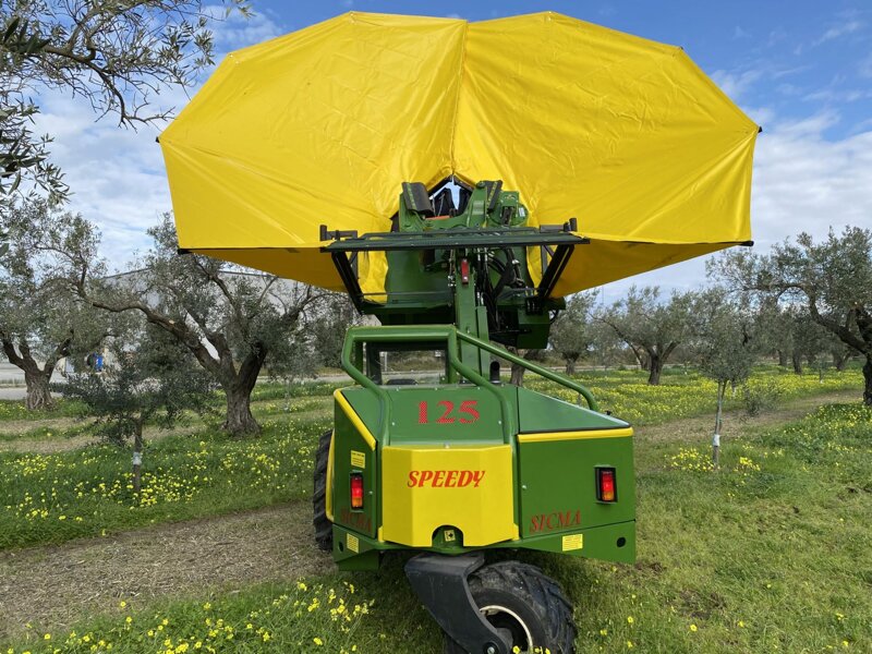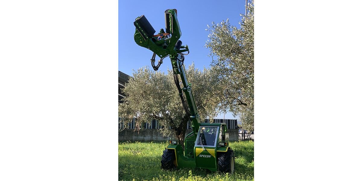 La semovente che abbina agilità e potenza, da sempre impiegata con successo anche negli impianti con sesti d’impianto ridotti. Speedy è disponibile con 2 motorizzazioni, Kubota da 55 kW (Speedy 90) o 85 kW (Speedy 125). È un buggy con 2 ruote anteriori motrici integrali ed indipendenti mentre la ruota posteriore è folle, per la massima agilità di sterzata ed efficienza di raccolta. Si presta alla raccolta delle olive, delle mandorle, dei pistacchi e dei frutti pendenti in genere, individuando negli impianti con sesti medio-densi il suo habitat di lavoro ideale.
