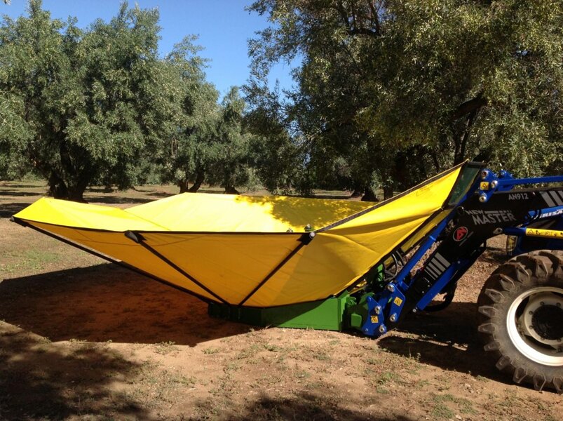 Kit di raccolta composto da pinza ed ombrello (optional) accoppiato alla trattrice già dotata di caricatore frontale (pala caricatrice). Provvisto di impianto idraulico indipendente (con serbatoio posteriore) è azionato dalla PTO della trattrice. È la soluzione ideale per sfruttare la struttura già presente sull’unità motrice, trasformandosi in raccoglitore combinato. Lo scarico del prodotto nel cassone, la cui capienza è di circa 250 kg, avviene tramite la botola sul fondo del cassone controllata idraulicamente. La macchina si adatta agli impianti di media densità, allevati a monotronco (se presente l’ombrello), fino a 45 cm di diametro. Sganciando l’ombrello, può operare anche con la testata vibrante.