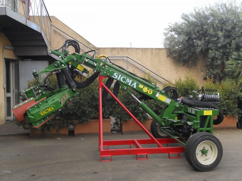 Applicazione semi-trainata per le medio-piccole esigenze di raccolta meccanica delle olive, noci, mandorle, pecan, pistacchi e frutti pendenti in genere. L’applicazione, ancorata alla trattrice mediante il sistema a 3 punti ed azionata tramite PTO (impianto idraulico indipendente), è provvista di braccio telescopico (doppio sfilo) che sostiene la testata vibrante New Generation, idonea per la raccolta di alberi giovani o di branche di medie dimensioni, fino a 5 m di altezza. Necessita di una trattrice di almeno 60 Hp e non è previsto l’abbinamento con l’ombrello rovescio.